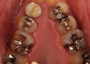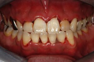 藤沢駅から徒歩5分、菅井歯科医院藤沢の加藤です。 当医院では、ほとんど全ての患者さんにブラッシング指導を行っています。 「ではまずは歯磨きのしかたからお話します」 というと、 「歯磨きって習うものなの?」 「面倒くさいから治療だけしてほしいんですけど…」 なんていう声が聞こえることがあります。 たかが歯ブラシ、と思うかもしれませんが、侮ってはいけませんよ。 正しいブラッシングで劇的にお口が変わった方をお見せしますね。 この患者さんは歯ぐきからの出血を気にして来院されました。 歯ぐきは真っ赤に腫れて、歯のきわに血がにじんでいます。 そして強い口臭もありました。 歯ぐきが腫れてしまった原因は、歯の表面に溜まった磨き残し(プラーク)による炎症でした。 でも、この方は決して歯磨きをしていなかった訳ではありません。 正しいブラッシングを知らず、自己流で歯を磨いていたそうです。 お口の状況を説明し、ブラッシング指導を行ったところ、歯ぐきの腫れはみるみる引いていきました。 まだ十分ではありませんが、赤く腫れ上がった歯ぐきは薄ピンク色になり、きゅっと引きしまったのが分かると思います。 出血も口臭も改善されました。 こうなれば出血で見えなかった虫歯もきちんと治療することができますね。 はじめと比べると一目瞭然です。 この方の歯ぐきを治したのは、毎日の正しいブラッシングです。 どうです?歯磨きってちょっとすごいかも、と思っていただけましたでしょうか。 今度は自己流のブラッシングで大変なことが起こってしまったお話をしようと思いますのでまた読んでみてくださいね。