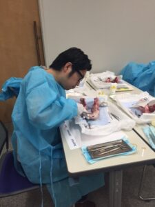 藤沢市の菅井歯科医院 藤沢の加藤です。 先月の初旬になりますが、勤務医の中谷先生と一緒に神奈川歯科大学附属横浜研修センターのセミナーに行ってきました。 このセミナーは実習がメインで、内容はブタの顎を使ったインプラント埋入や遊離歯肉移植術(歯茎下がりなどが生じやすい薄い歯茎を改善するために、丈夫な硬い歯茎を移植する手術)などの歯周外科手術でした。 ブタの顎はヒトに比べてとても大きく、歯茎も骨もたっぷりあるので、外科の実習にはもってこいなのです。 講義を受け、その場で実習することでより理解が深まりました。 中谷先生も熱心に実習していました。 今回使わせてもらったこのブタは鹿児島県産の黒豚だそうで、しゃぶしゃぶや豚骨スープだけではなく、こういった風にも大活躍しています。 勉強させてもらったことをブタさんに感謝して、今後の臨床に活かしていきたいと思います。