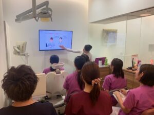 こんにちは。藤沢駅から徒歩5分、菅井歯科医院 藤沢の長岡です。 先日、院内勉強会を行いました。 テーマは「医療接遇」です。 「接遇」とは、よりおもてなしを意識した患者さんへの対応です。 今回は、医療接遇セミナーと題して、キャビンアテンダントのキャリアを持つ接客のプロフェッショナルを講師にお招きし、ご講演いただきました 患者さんにより安心して診療を受けてもらえるにはどうしたらいいか。 思いやりをどうしたらお伝えできるのか。 はっとさせられることがたくさんありました。 後半は動画を取りながらのロールプレイ。 間近で撮影されて緊張するなか、みんな頑張ってくれました。 撮影した動画はみんなで見ながら一人ひとり講師の先生にアドバイスをいただきました。 「私ってこんな感じなんだ!」と、気付かなかった自分の癖を知れたり、みんなで意見を出し合ったり、とても有意義な時間になりました。 私も、日ごろじっくり見ることのできないみんなの仕事ぶりが見られてとても良かったです 今回のセミナーで学んだことを、少しずつでも活かしていければ、もっともっと患者さんにファンになっていただけるようなクリニックになれるのではないかと思います。 また一つ、仕事に目標と楽しみができました