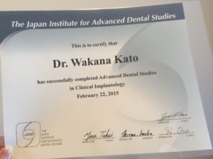 こんにちは。菅井歯科医院 藤沢の歯科医師の加藤です。 先月ブログに書かせていただいた、インプラントコースを無事修了しました。(ブログはこちらです) 今回は、インプラントの2次手術から被せ物を作るまでがメインの講習でした。 インプラントの被せ物を作る際は、ラボアナログというパーツを使って模型を作ります。 下の写真の緑色のパーツがラボアナログです。 人工の歯ぐきの中に、実際のお口の中と同じ位置、角度にインプラントが再現されています。 この模型上で被せ物を作っているんです。 実習ではこのラボアナログを扱いましたが、普段は技工士さんにお願いしている作業なのでとても新鮮でした。 研修の修了証もいただきました。 この講習を通して、ひとつひとつの工程を丁寧に、そして確実に積み重ねて行くことの大切さを再認識することができました。 あたり前のことですが、いつも心に留めておきたいと思います。 2月22日(日)に研修をうけましたが、この日は東京マラソンが開催されましたね。 建物の真下がマラソンコースになっていて、休憩時間の度に見に行ってしまいました。