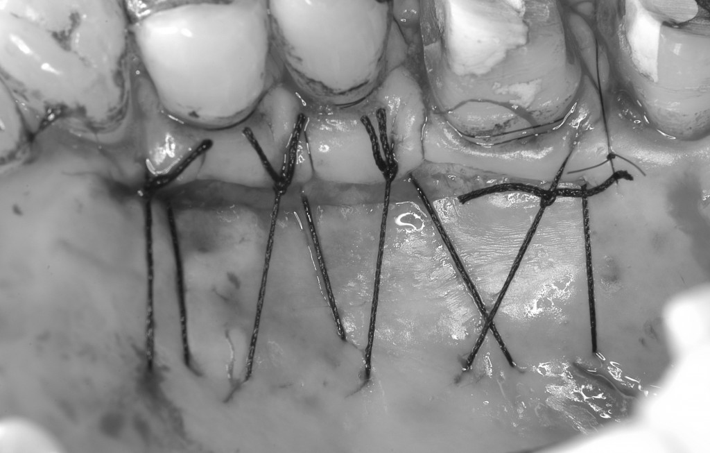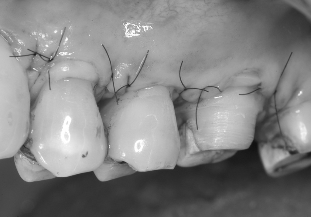 結合組織を採ってきた部分です。採取した後に縫合してあります。ここの傷は術後,硬い食べ物などが当たらないように気をつけていただきます。術後1〜2週間で良くなってきます。