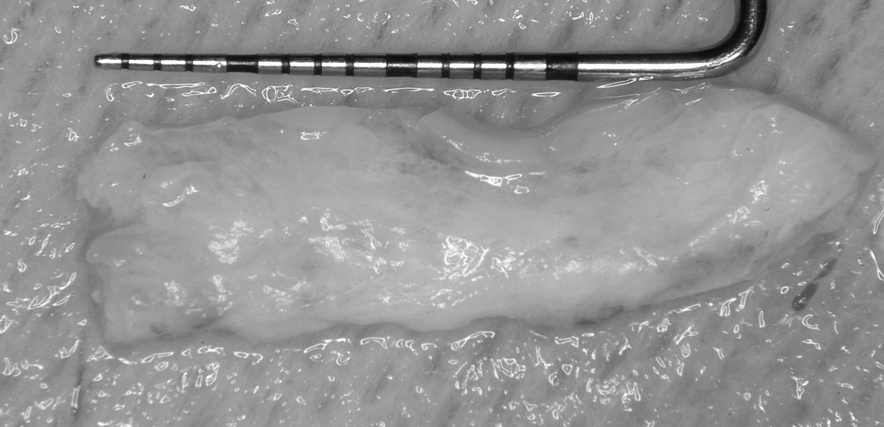 患者さんご自身の上顎の内側(口蓋という部分)から結合組織の一部を採取し,形態を整えます。
