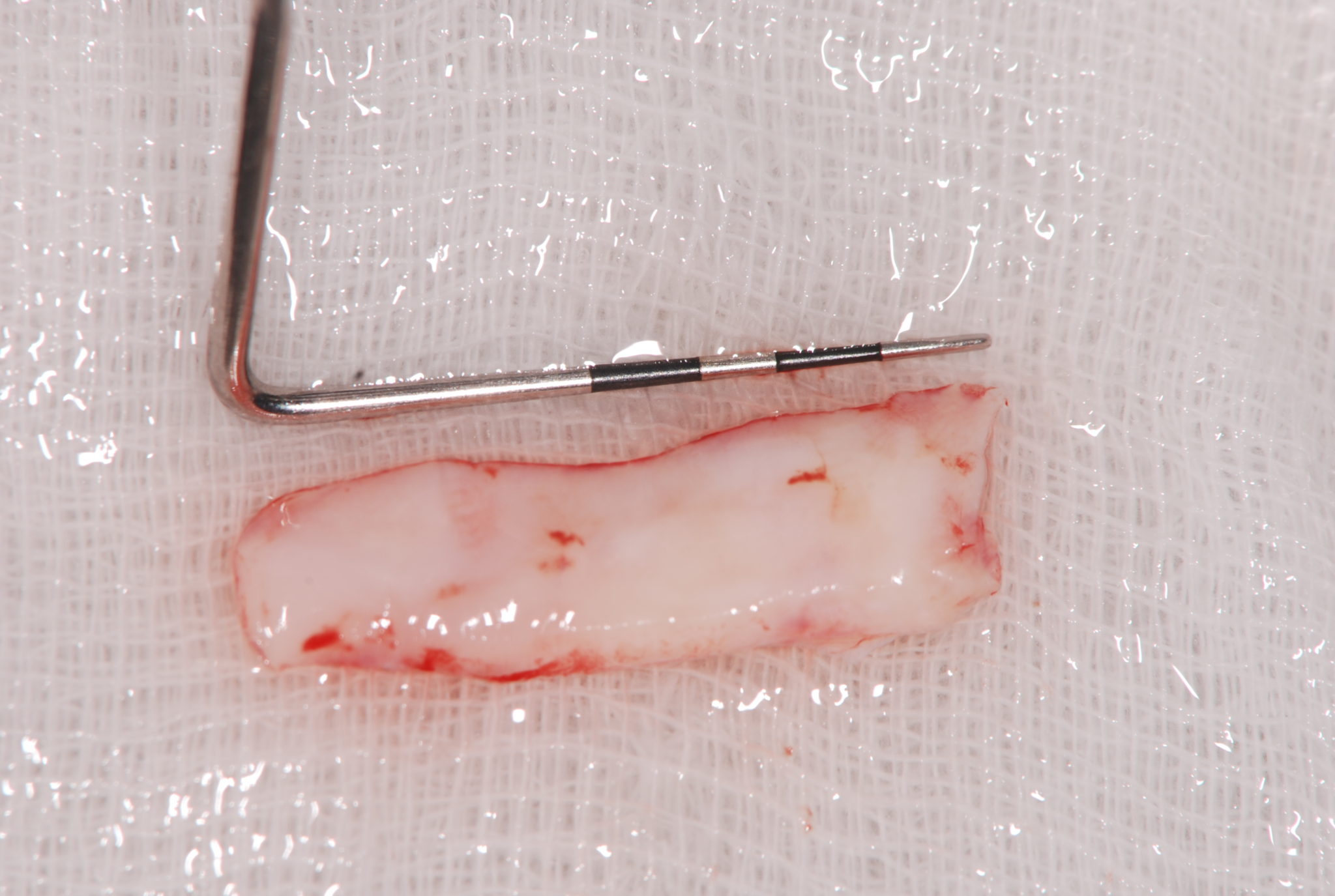 採取した上皮を薄い歯茎の部分に移植し、縫合する。