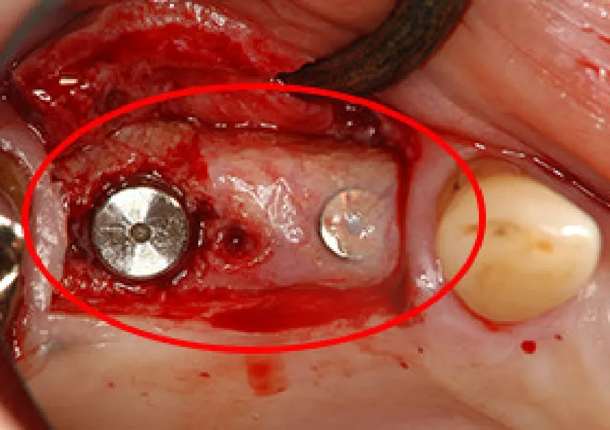 GBR(骨再生誘導法)とは、欠損した骨組織を特殊な膜等を用いて再生させる治療法です。